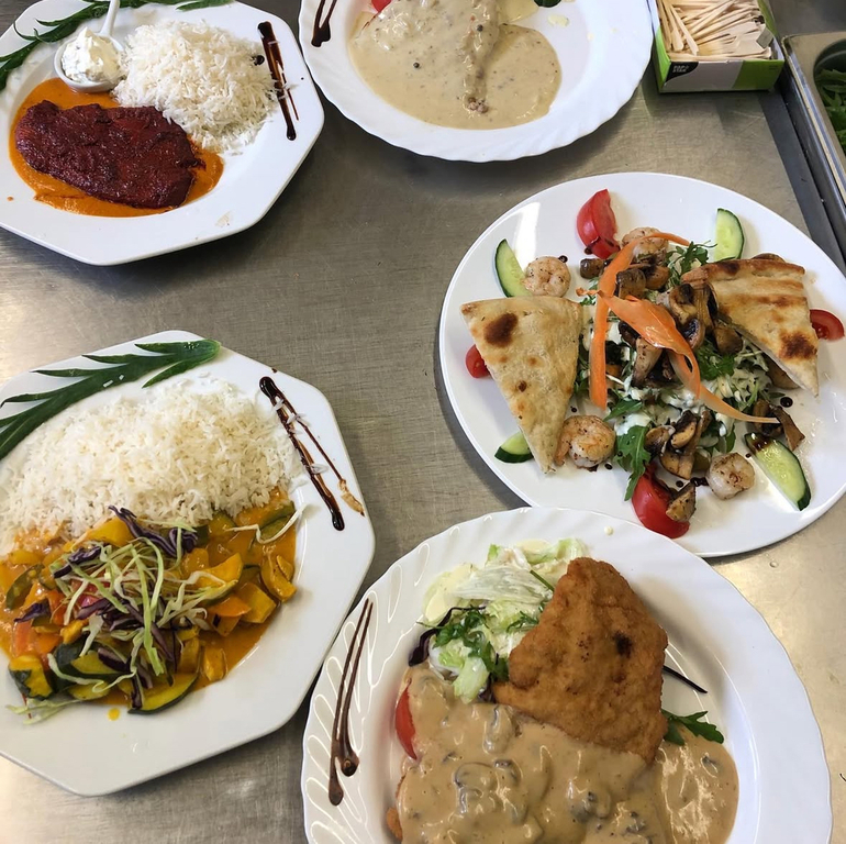 137. Hähnchen Gyros-Teller 12,00€ mit Tzatziki, Salat, Pommes 140. Falafalrolle Vegetarische 6,00€ Falafal mit Salat, Gurken, Tomaten, Zweibeln, Spezialsoße und Tzatziki 141. Falafalteller Vegetarische mit Salat, Reis, Tzatziki 9,00€
