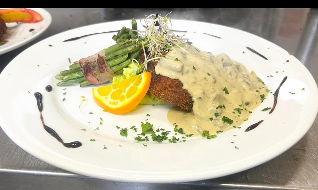Schweinschnitzel mit Hackfleischsoße dazu