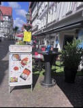 Die richtige Erfrischung erwartet Sie auf unserer Naturstein-Terrasse mit stilvollem Mobiliar und tollem Blick auf die Umgebung des Werra-Tals - egal ob herrlich kühles Radler, frisch gezapftes Pils vom Fass, exotischer Cocktail oder fruchtiges Eis. Auch ein stärkende Mahlzeit von unserer Karte, lässt sich hier bestens genießen.